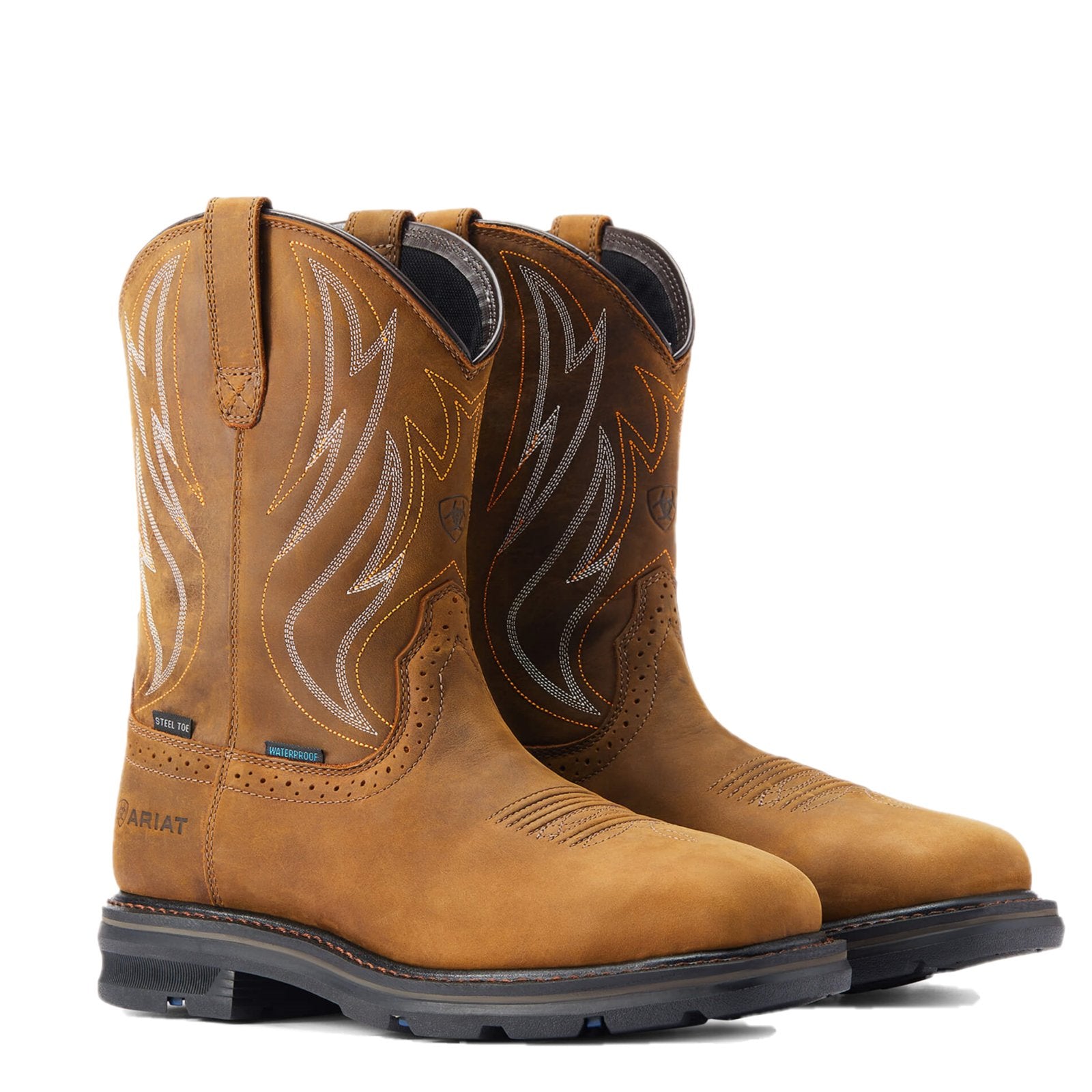 Ariat Men's 10" Waterproof Sierra Shock Shield Brown Wide Square Steel Toe Work Boot