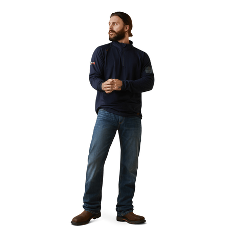 Ariat Men's FR Combat Stretch Patriot 1/4 Zip Navy Work Shirt