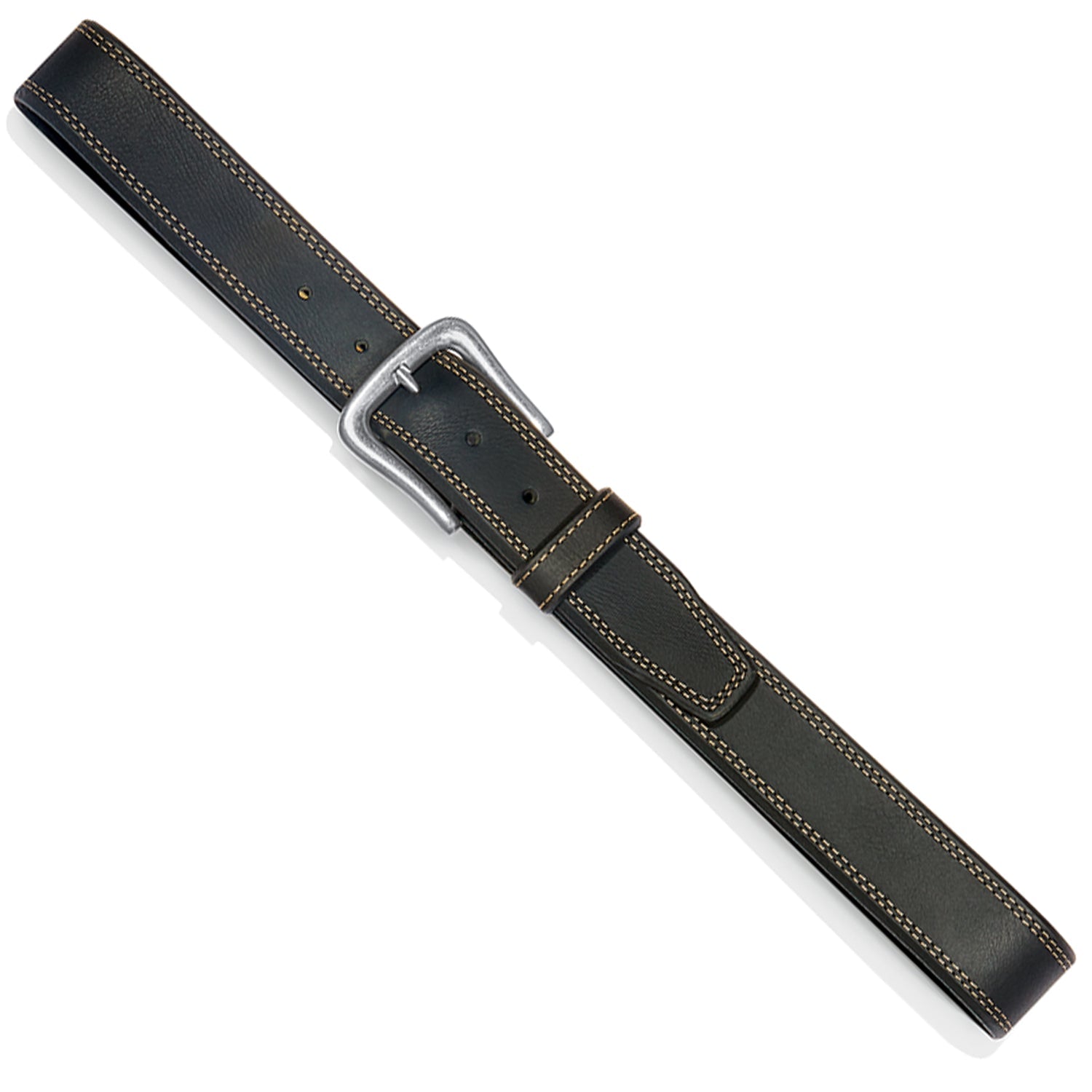 Naturally milled vegetable tanned leather with double-stitching detailing and a brass finished buckle make this belt as great-looking as it is durable. Width: 1 1/2". Style # C14023.