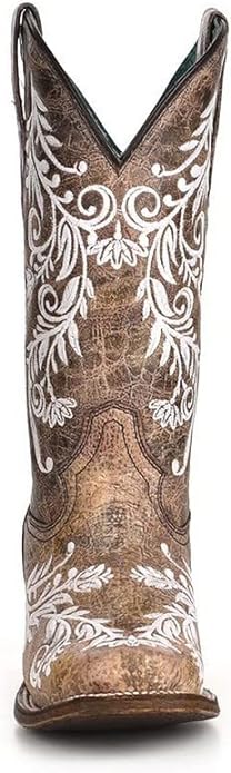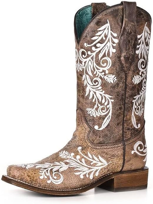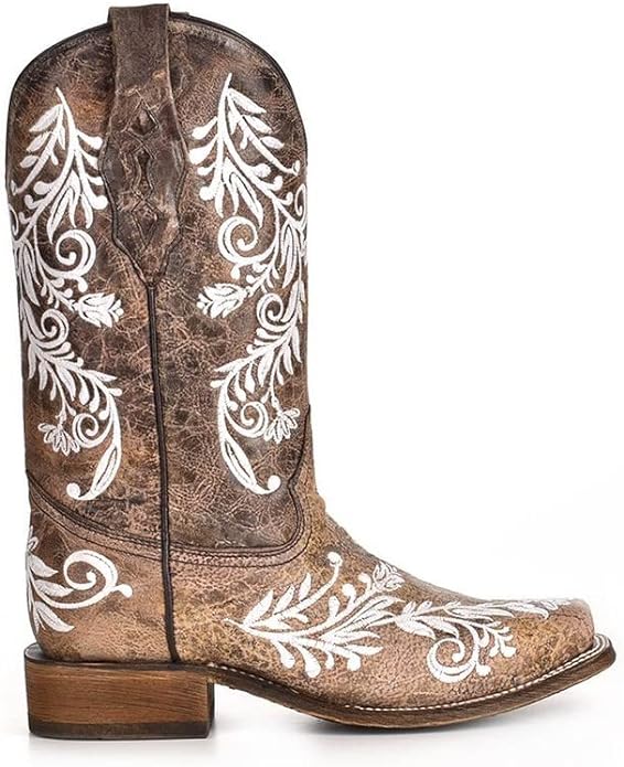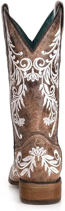 Corral Women's 12" Brown and White Embroidery Square Toe Boots