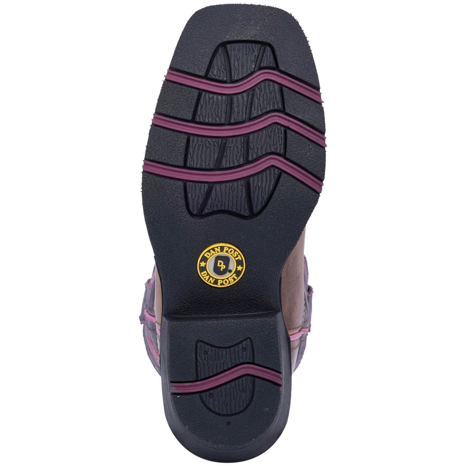 The Majesty is a darling boot with durable leather for life's big adventures. The brown foot is paired with a purple shaft accented in pink stitching and piping. Also comes with a broad square toe, Comfort Cushion insole, and a rubber outsole for traction. Style # DPC2947.