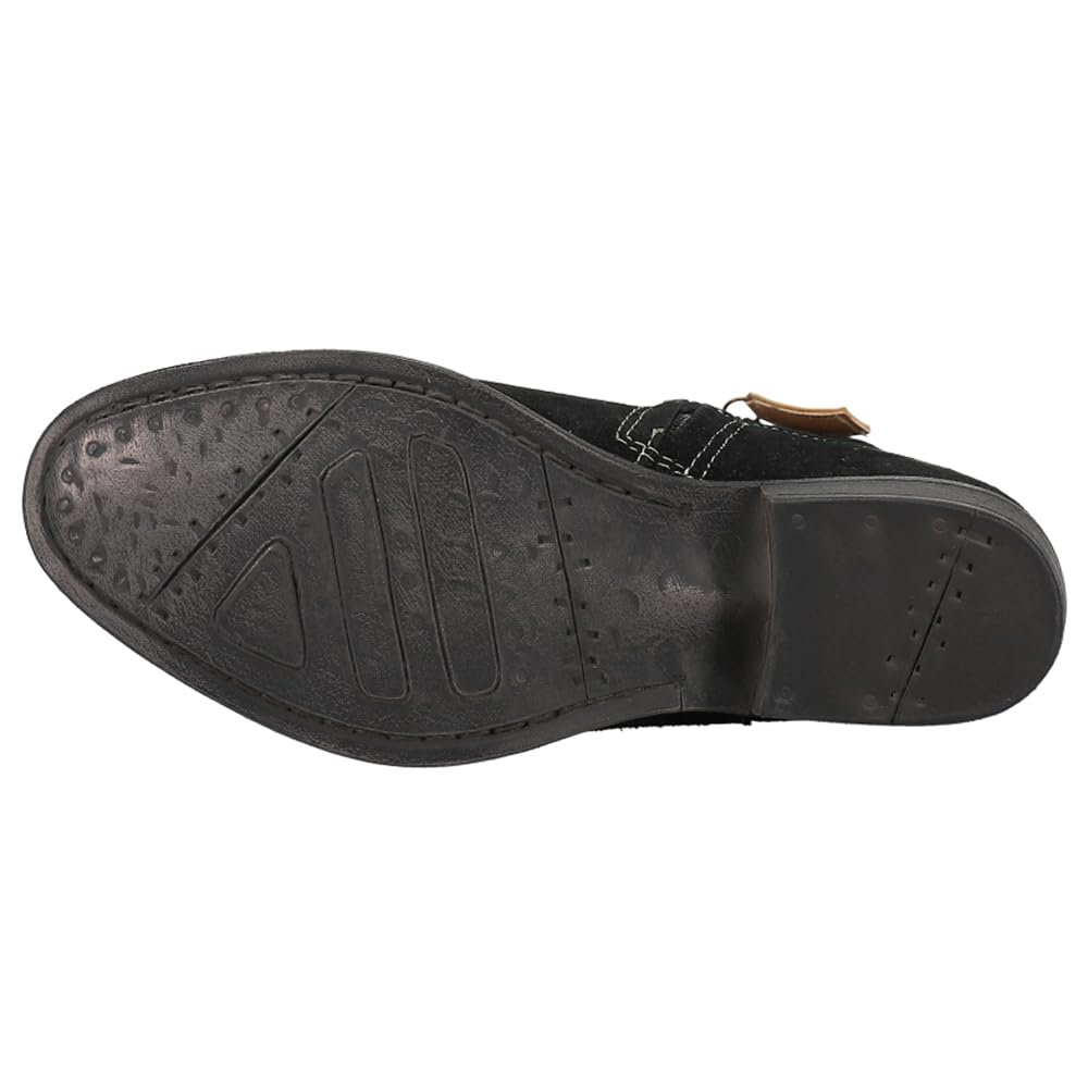 The Dingo1969 Daisy Mae is a head turner! Constructed of soft suede with fancy stitching. Contrasting piping accents the top. Inside zipper for function and style. Style # DI861BLK.