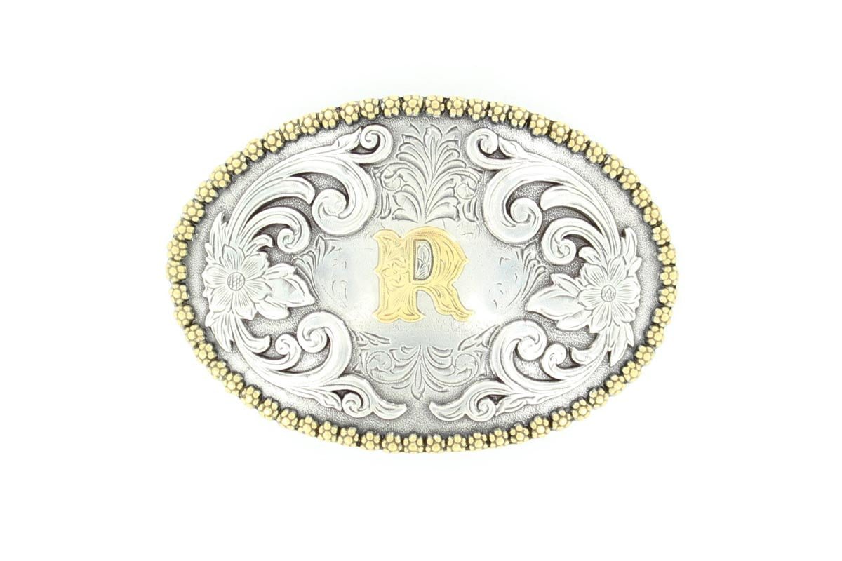 Nocona Men's Oval Initial Silver and Gold Belt Buckle
