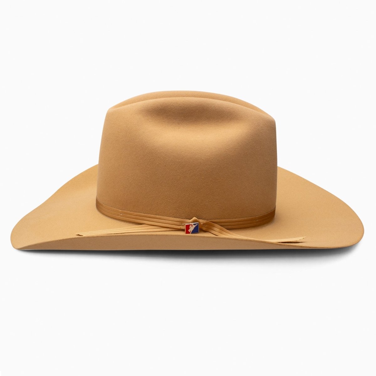 It’s not just a winner, it’s a legend! Part of our Wright Western Collection, the 6X Legend Cowboy Hat in Butterscotch was designed with rodeo athletes in mind. This hat offers rough-and-ready 6X felt construction, a 4 5/8” cattleman’s crown, a 4 1/4” brim, and a leather sweatband. The red and blue Wright Western pendant distinguishes this hat from the competition. Style # RFLGND-RB42.