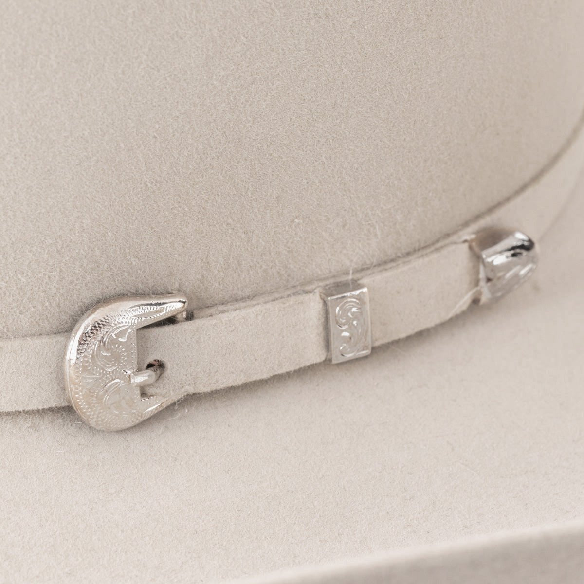 Meticulously crafted in Garland, Texas, the 6X Midnight Cowboy Hat in Silver Belly steals the show in any dance hall, honky tonk, or cowboy club you step foot in. Even if you don’t frequent after-hours establishments, it’s still a superior hat. Features include 6X felt construction, a 4 5/8” cattleman's crown, a 4 1/4” brim, a leather sweatband, and silver detailing on the hatband. Style # RFMDNT-094271.