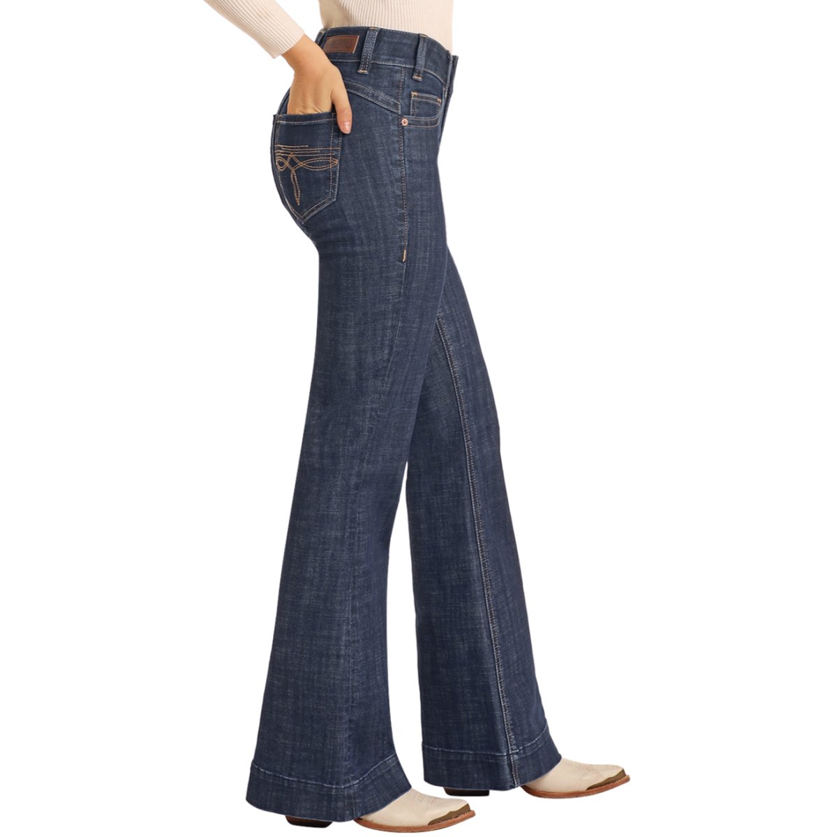 Rock & Roll Women's Diamond Belt Loop Mid Rise Dark Wash Trouser Jeans