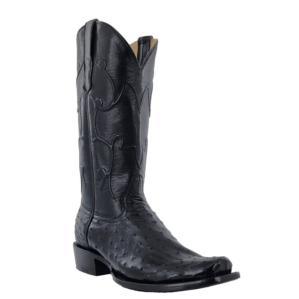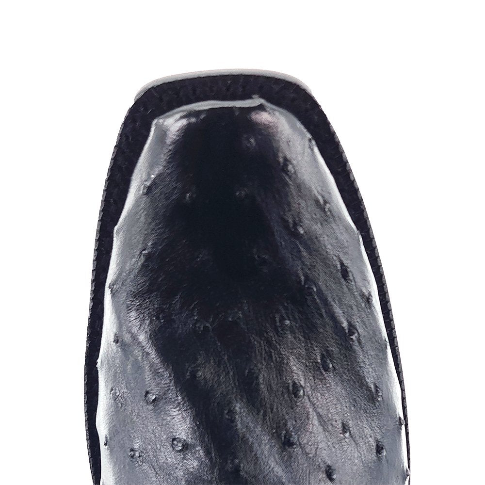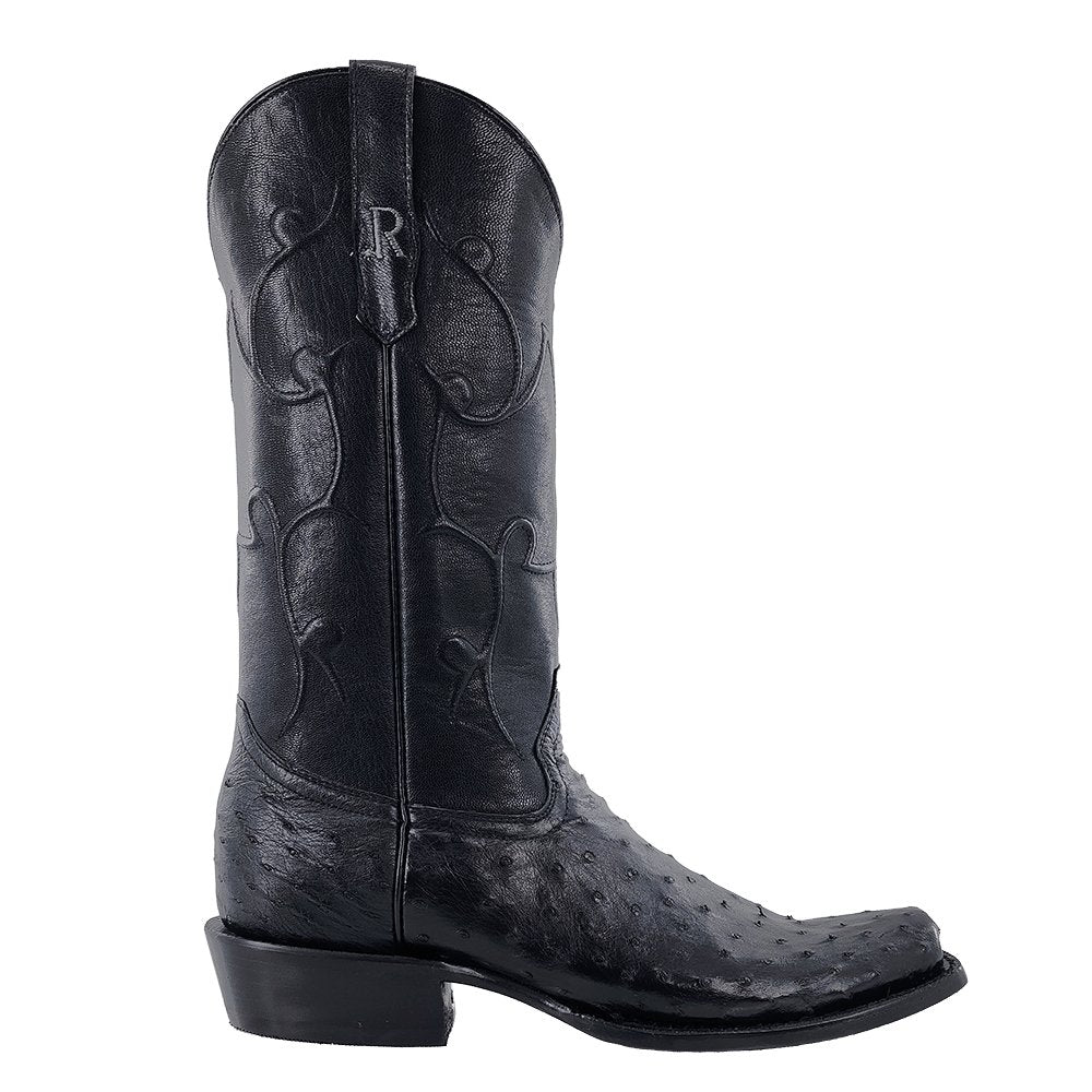 R. Watson Men's 13" Black Full Quill Ostrich Narrow Square Toe Boots