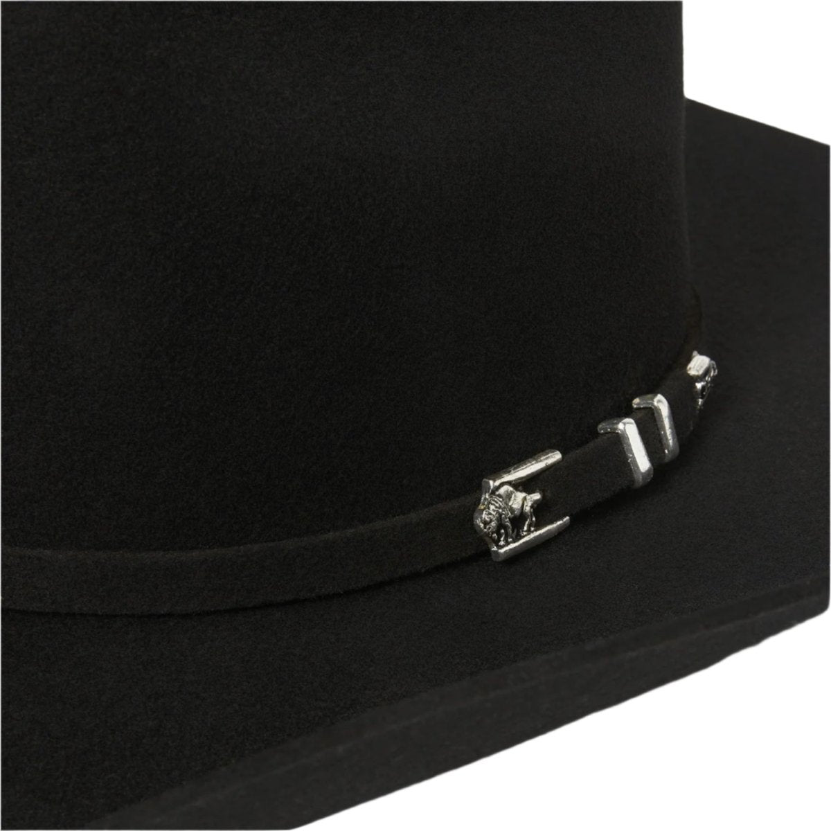 This Apache 4X is handmade in the U.S.A. of durable, weather-resistant 4X quality buffalo felt, which has a unique, pleasingly coarse texture. It features a 4" brim and a 4 ⅝” regular oval cattleman crown finished with a matching self-felt band and three-piece silver-tone buffalo buckle set. A genuine leather sweatband and full satin liner ensure a secure and comfortable fit. Includes an original Stetson hat box. Style # SBAPCH-754007.