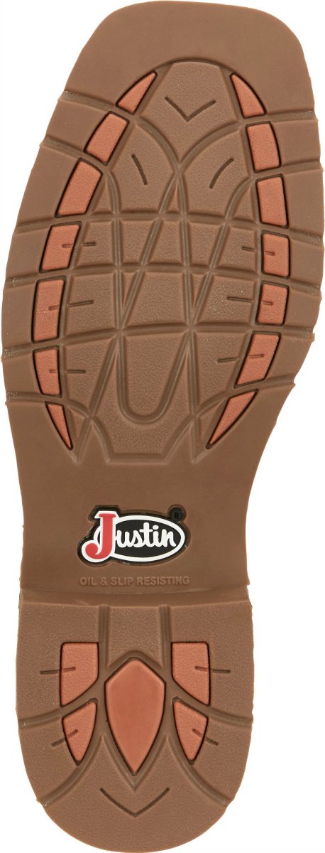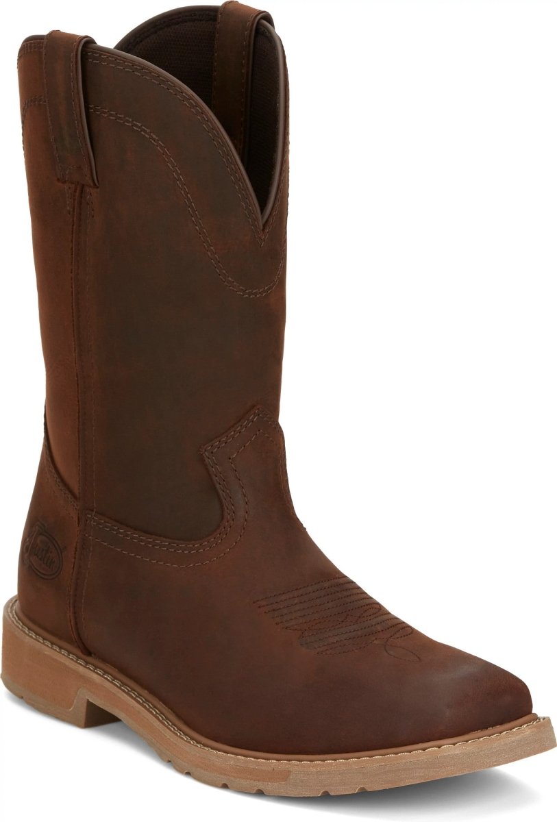 Justin Men's 11" Wide Square Toe Pecan Brown Water Buffalo Work Boot