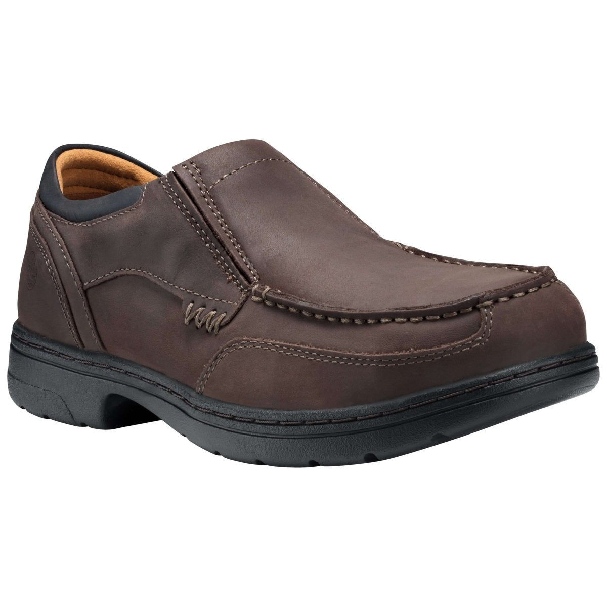 The Timberland Branston slip-on work shoes blend rugged good looks with the performance features of Timberland PRO. An alloy toe, non-slip outsole, fiberglass shank, cement construction and electro-static dissipative properties add layers of safety and comfort. They are also breathable and feature moisture-wicking lining with anti-microbial treatment for odor control. Style # TB091694.