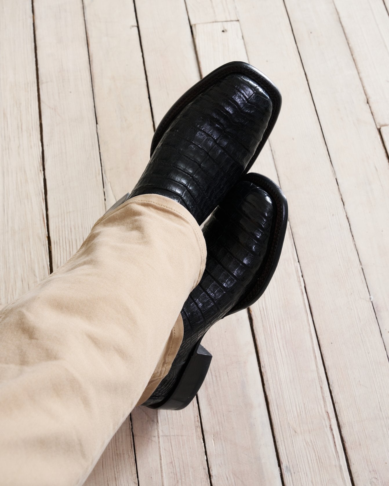 Striking caiman belly stars on our double-stitch welted broad square toe cowboy boot profile. Both refined and bold, no matter which handsome option you choose, The William has “Don’t Go Gently” attitude written all over it. A standout from top to toe, its 12” bovine shaft features a stitched flame pattern design that cackles with personality. Pair them with dark denim and a tee or your finest sport coat — you make the rules. Style # M10069MID.